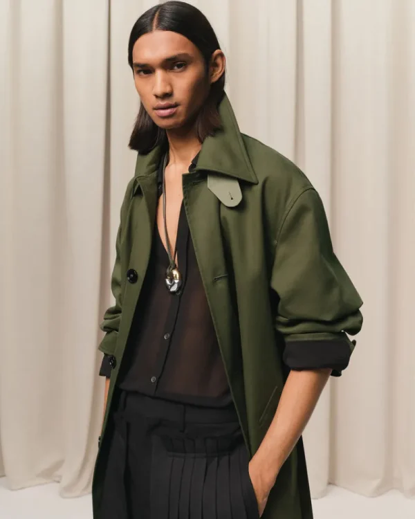 Front opening with horn buttons with metal eyelets