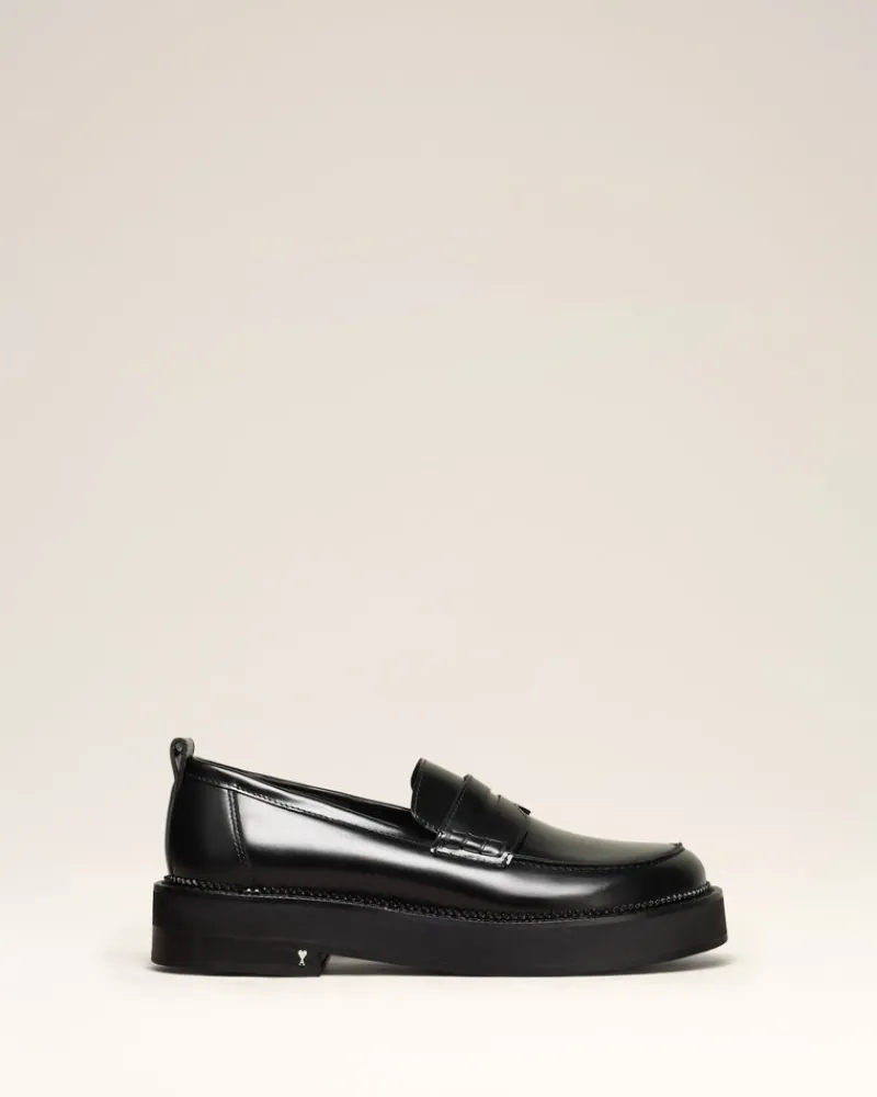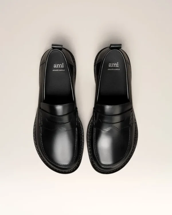 Anatomical-toe loafer in smooth leather.Ami de Coeur metal studs at the backEmbossed “ami alexandre mattiussi” logo on …